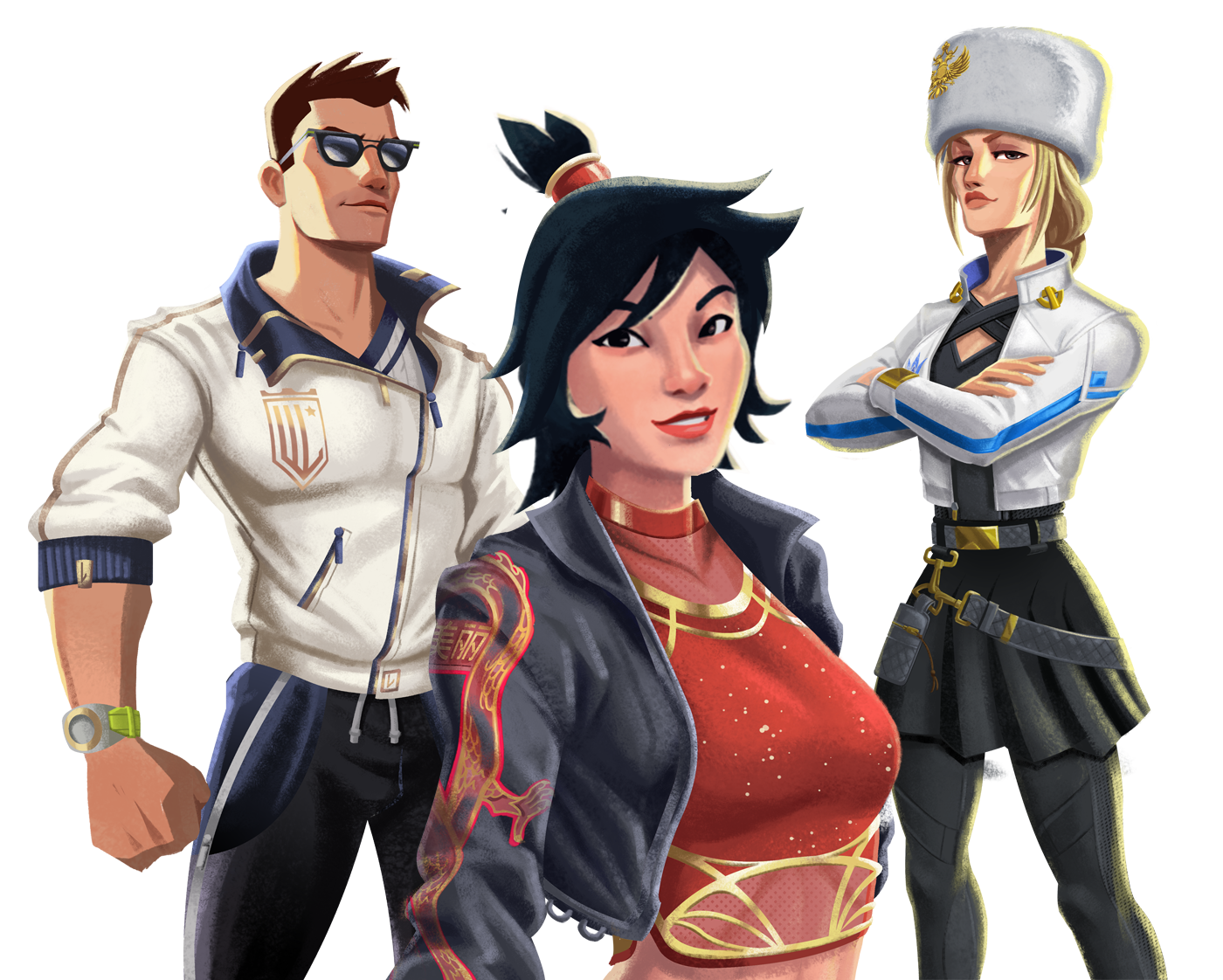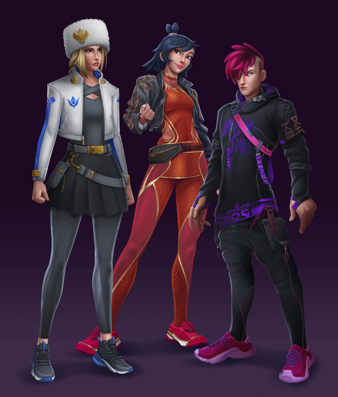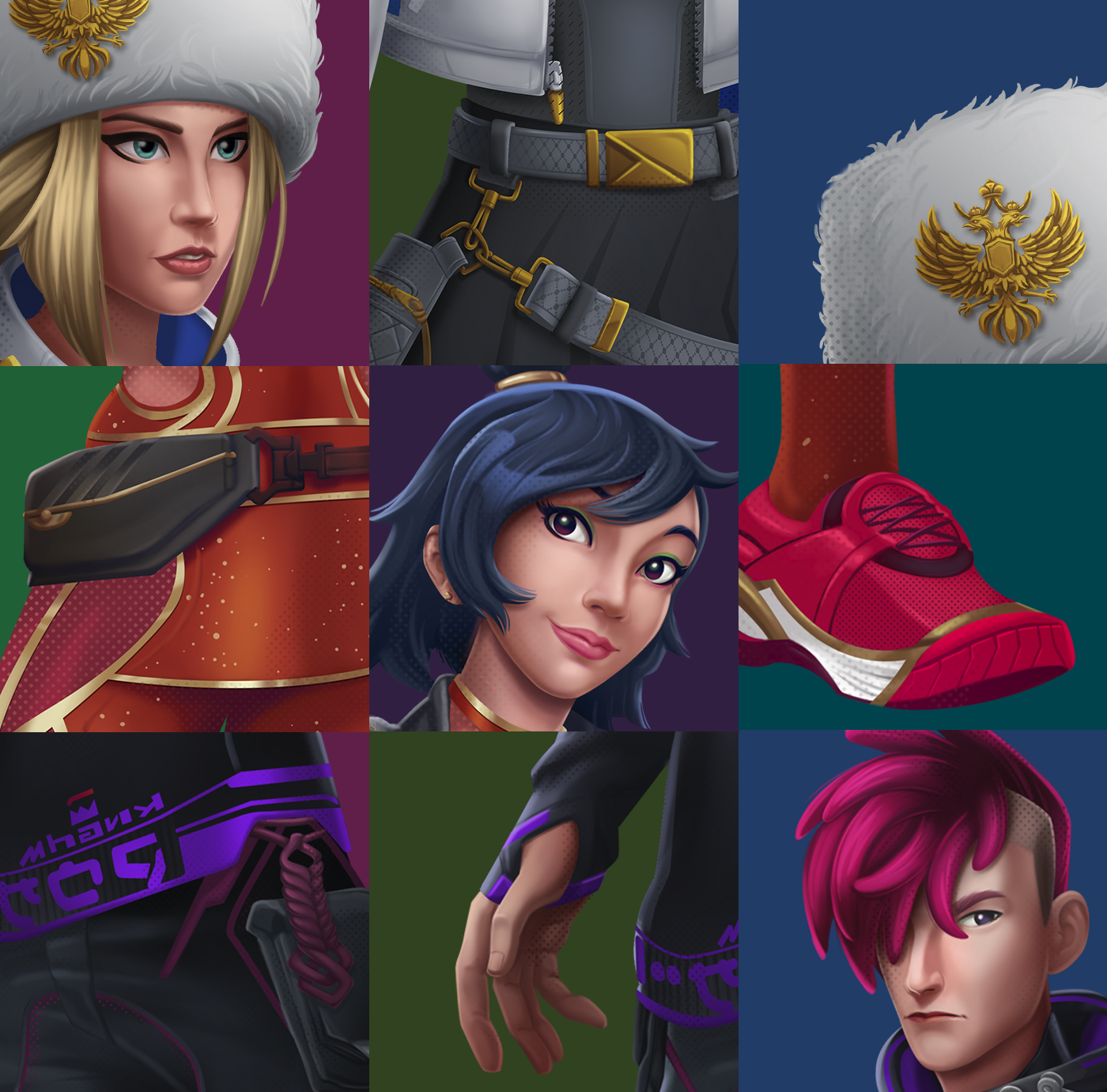 Pintura digital de skins de personagens para o game Tennis Clash da Wildlife.